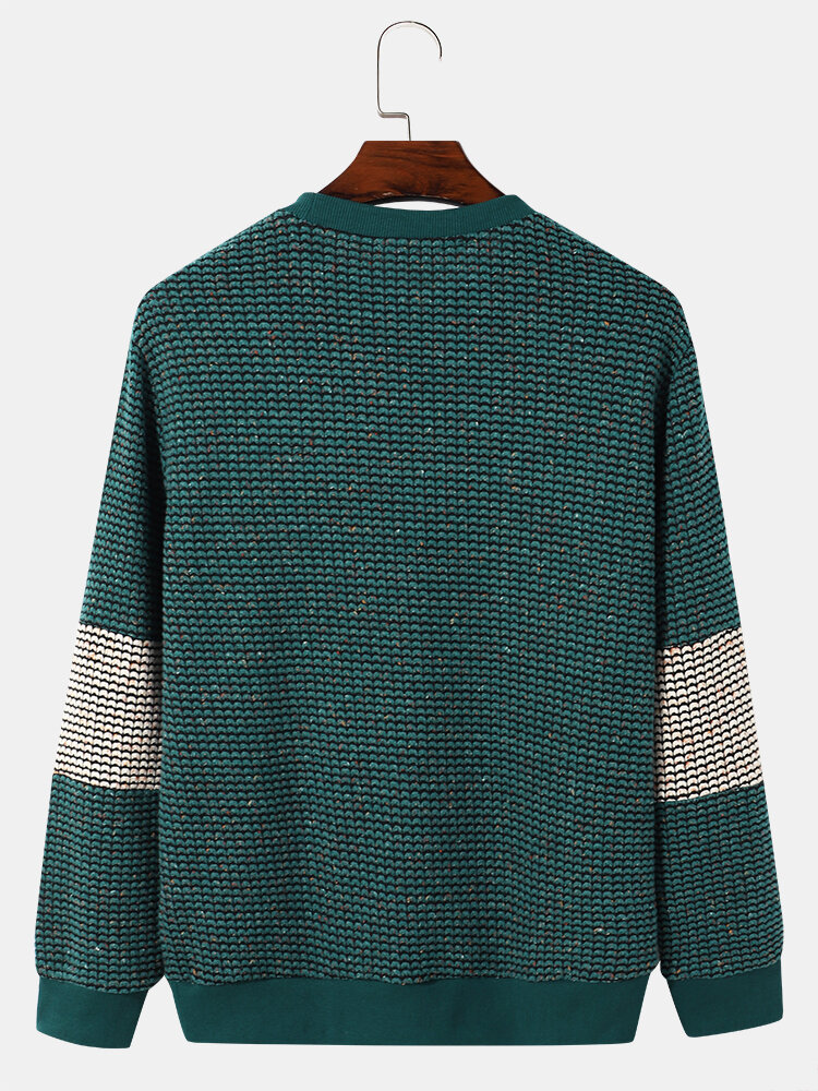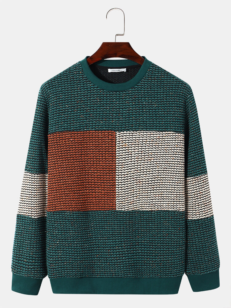 Men Knitted Patchwork Color Block Long Sleeve Casual Pullover Sweatshirt – Green S