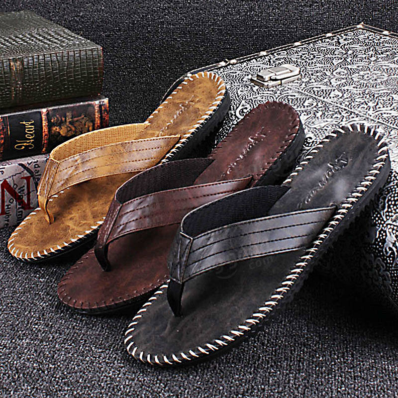 Men Leather Flip Flops Thick Bottom Comfortable Beach Can Be Immersed In Seawater Durable Shoes – 42 Yellow