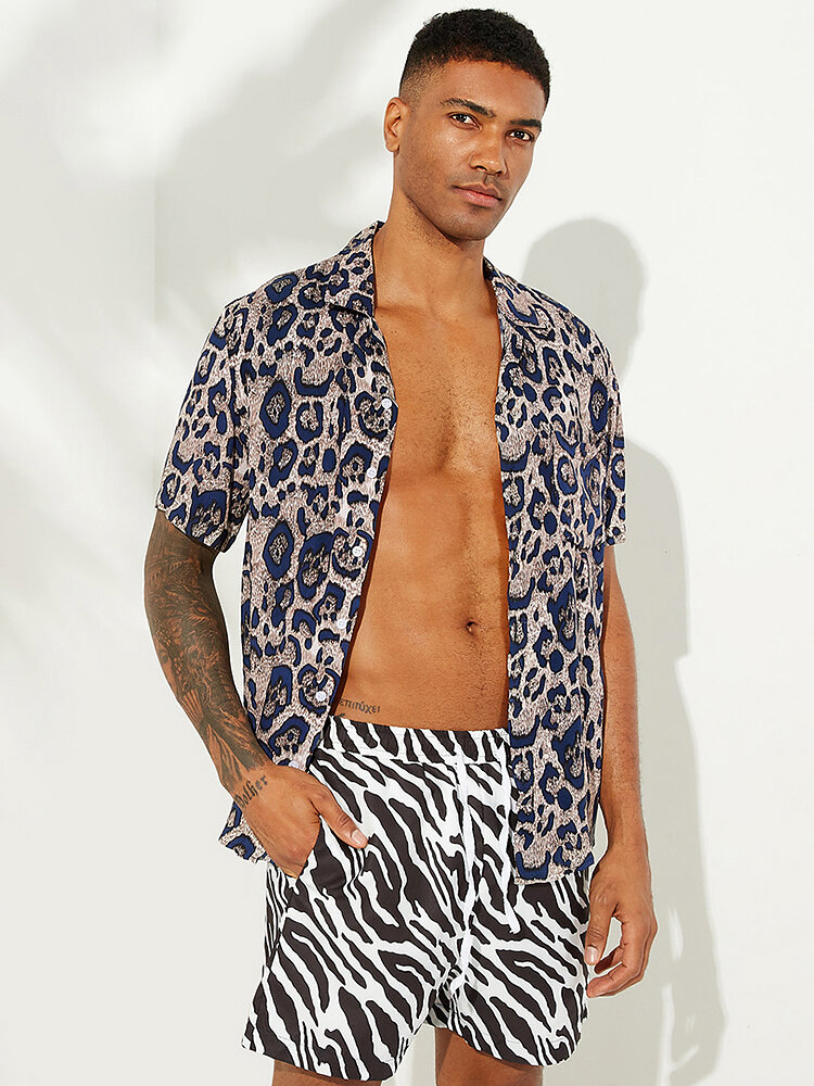 Men Leopard Print Soft Short Sleeve Relaxed Shirts – 2XL Brown