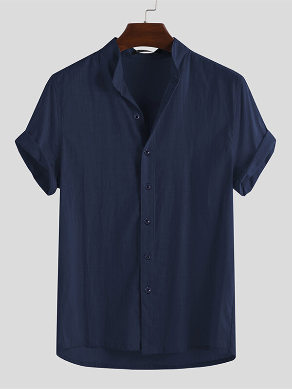 Men Linen Loose Casual Collarless Tops Holiday Casual Shirts – S Grey