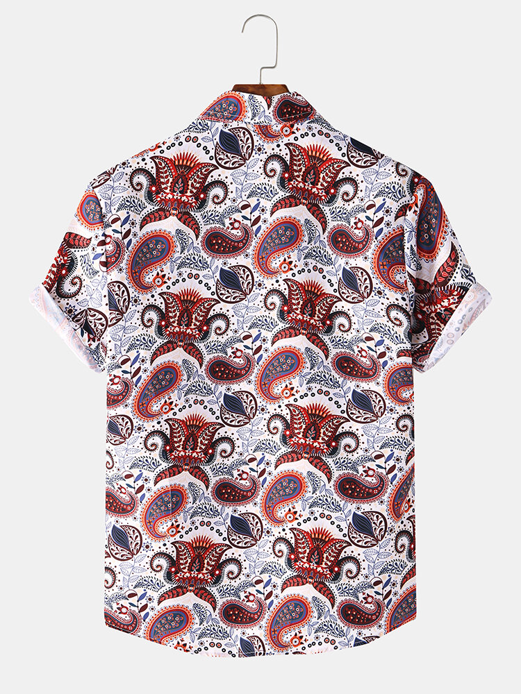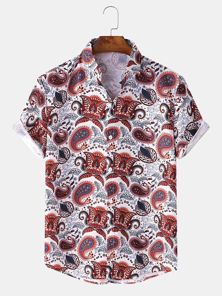 Closure Type:Single BreastedCollar:Turn-down CollarColor:Black,WhiteCrafts:SewingCuff Type:Straight SleevesDecoration:ButtonFit Type:FitLength:RegularMaterial:PolyesterOccasion:Beach,Casual,WorkPattern:PaisleySeason:SummerSize:2XL,L,M,S,XLSleeve Length:Short SleeveStyle:Casual,FashionThickness:Regular