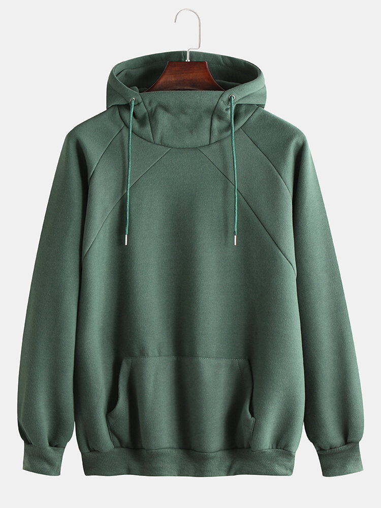 Men New Winter High Collar Loose Hooded Solid Color Plus Velvet Thickened Youth Sweaters – XL White
