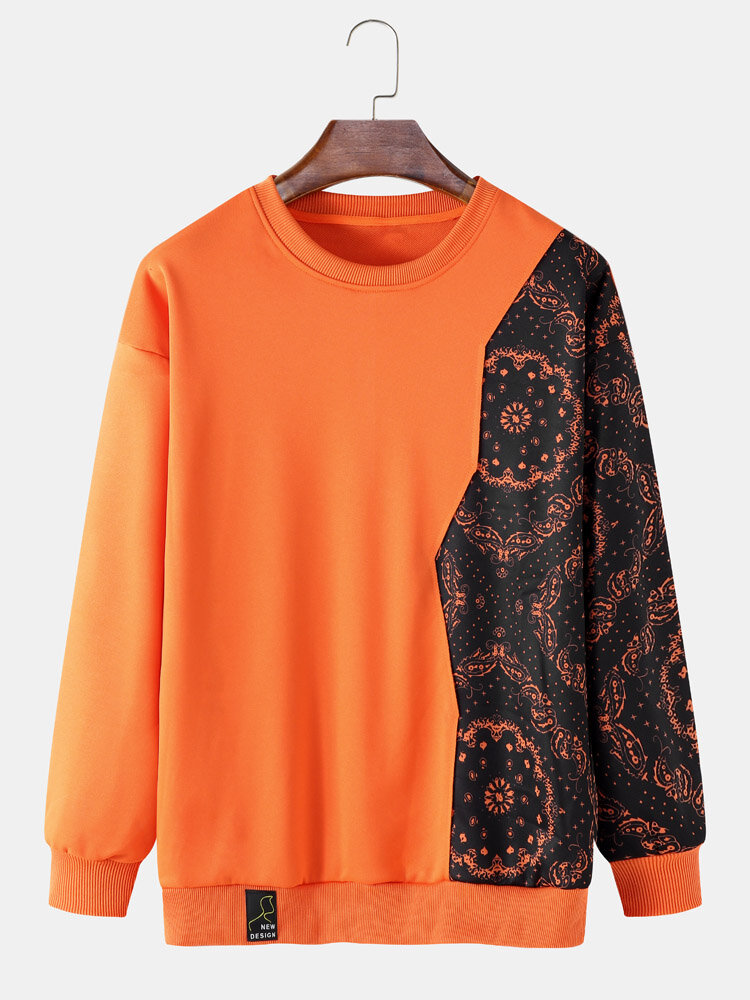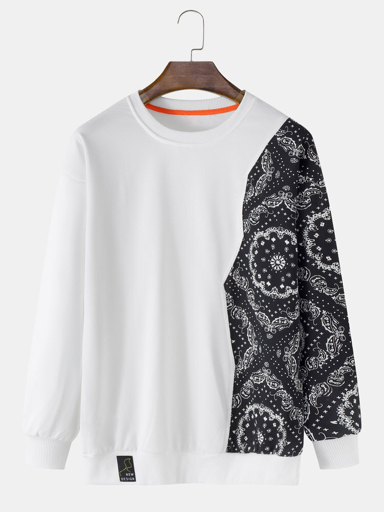 Men Patchwork Color Block Contrast Floral Pullover Sweatshirt – Black L
