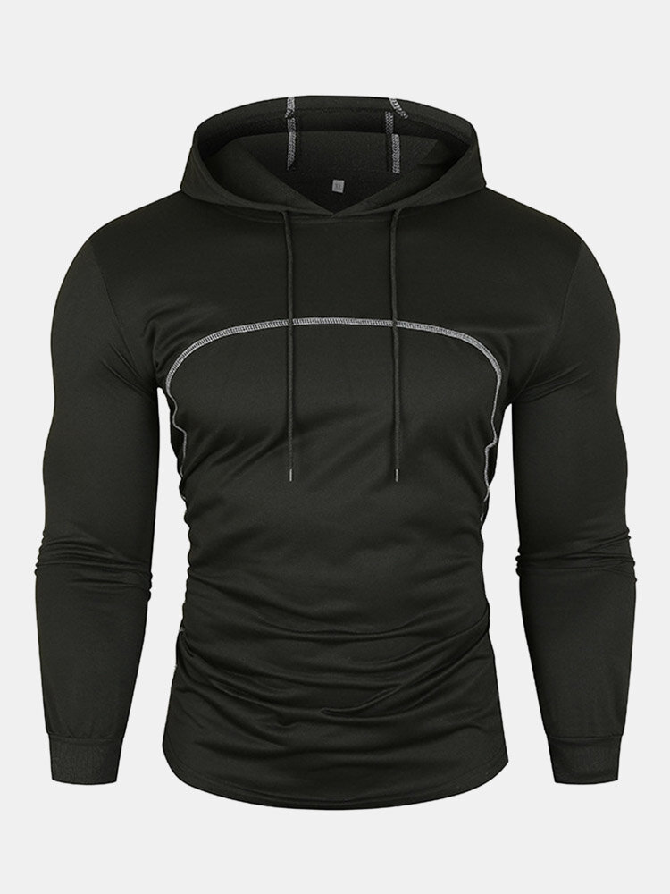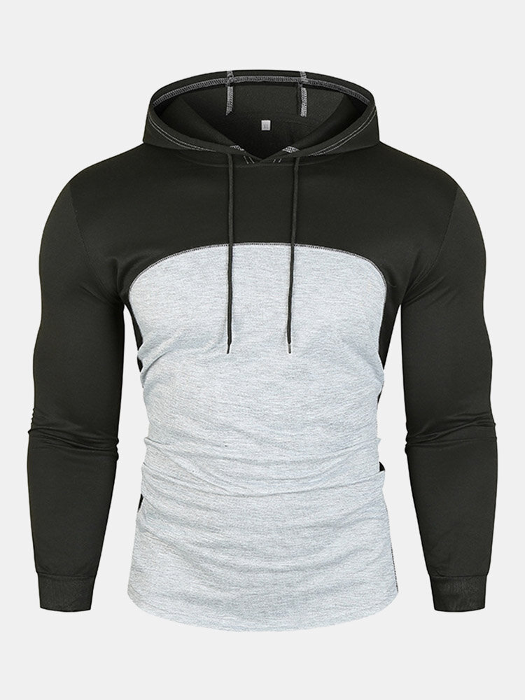 Men Patchwork Solid Winter Sport Fleece Hooded Sweatshirt – Black M