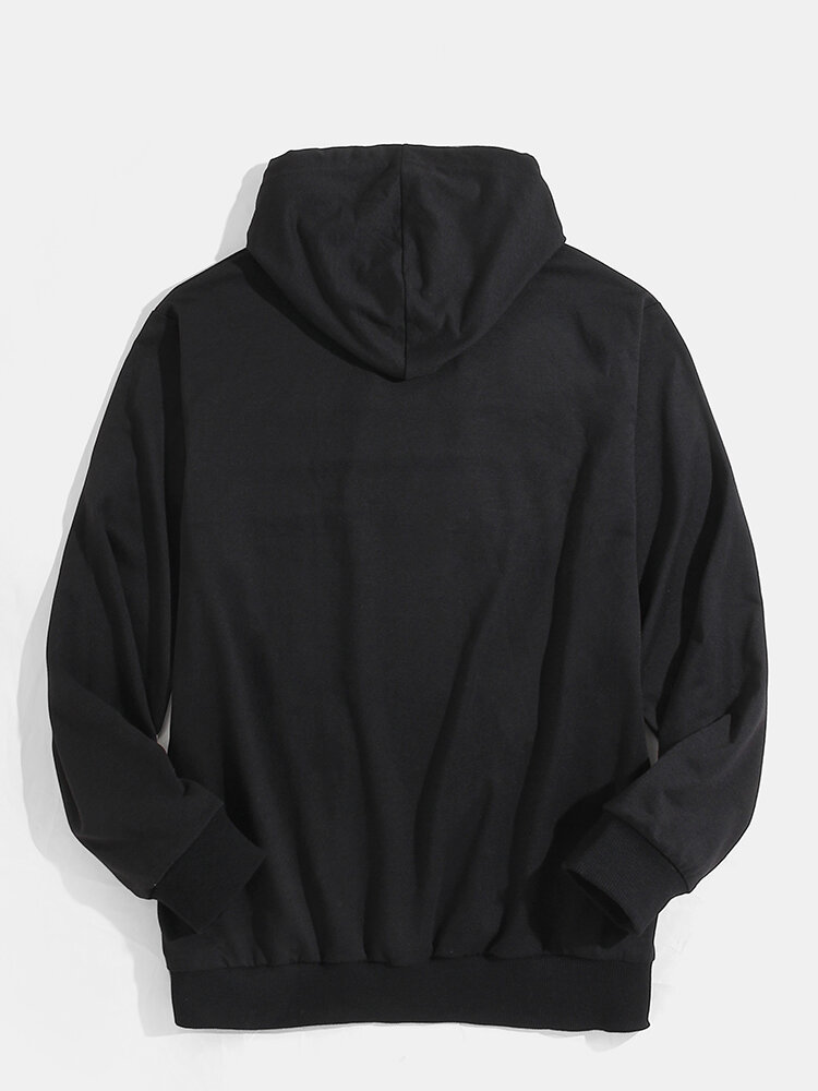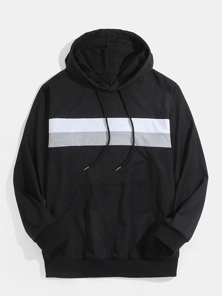 Men Patchwork Stripe Long Sleeve Black Hoodies With Kangaroo Pocket – M Black
