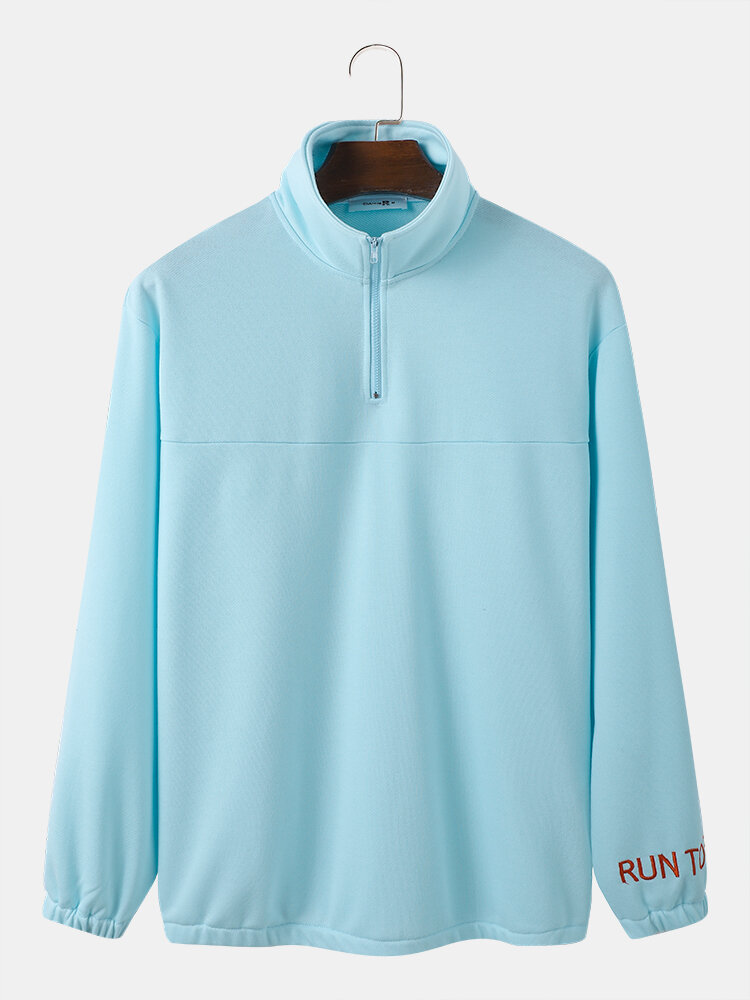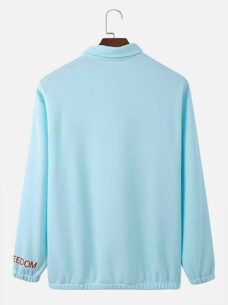 Men Polos Collar Solid Zipper Long Sleeve Casual Pullover Sweatshirt – Light Blue S