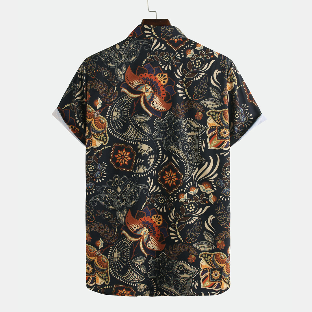 Men Printed Retro Style Summer Casual Short Sleeve Lapel Shirts – S Black