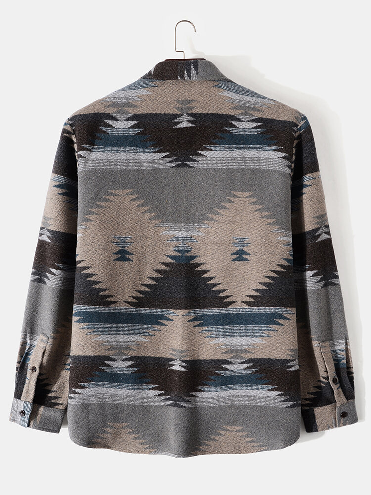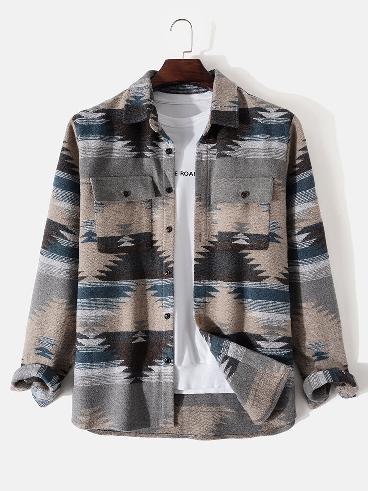 Men Printed Tree Pockets Lapel Button Casual Shirts – Khaki S