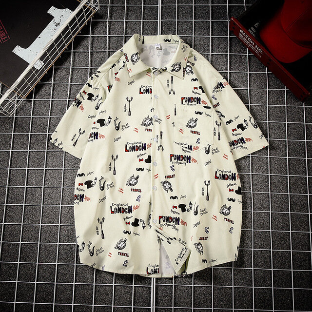 Men Printing Short-sleeved Shirt Youth Male Flower Shirts – 2XL Brown