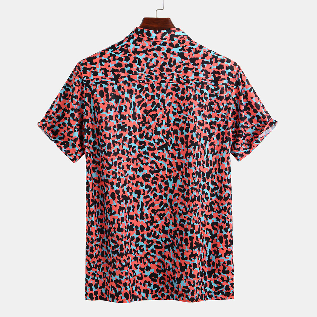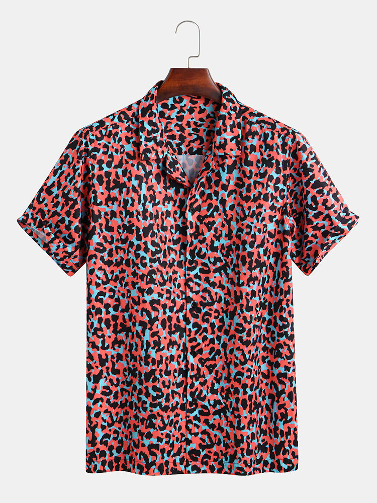 Men Red Leopard Print Short Sleeve Revere Shirts – XL Red