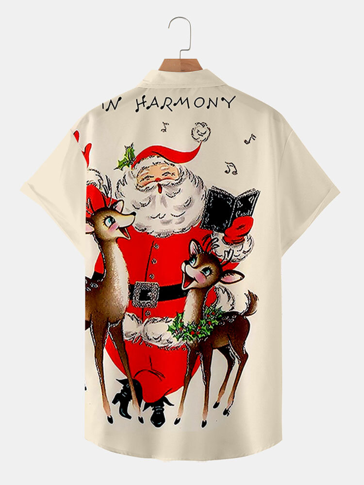 Men Santa Claus Lapel Collar Short Sleeve Casual Shirts – Beige S