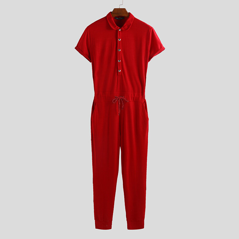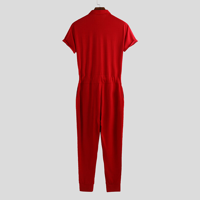 Men Short Sleeve Jumpsuit Lapel Neck Romper Bodybuilding Overalls Pants Playsuit – 2XL Black