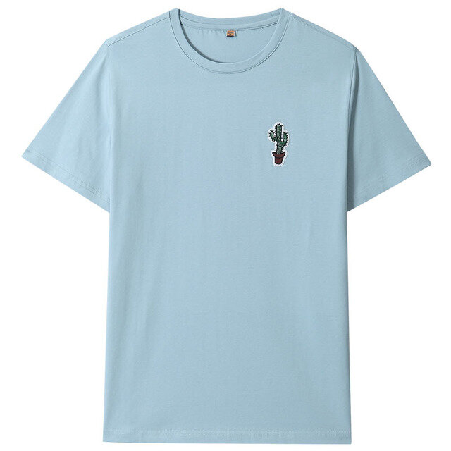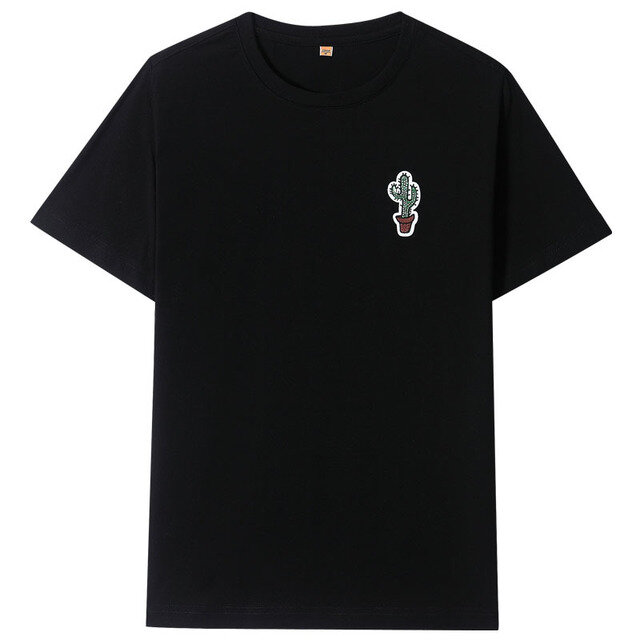 Men Short Sleeve T-Shirt Original Print Round Collar Tops – L Black