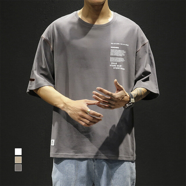 Men Short-sleeved T-shirt Loose 5 Points Sleeves Bottom Tops – XL Khaki