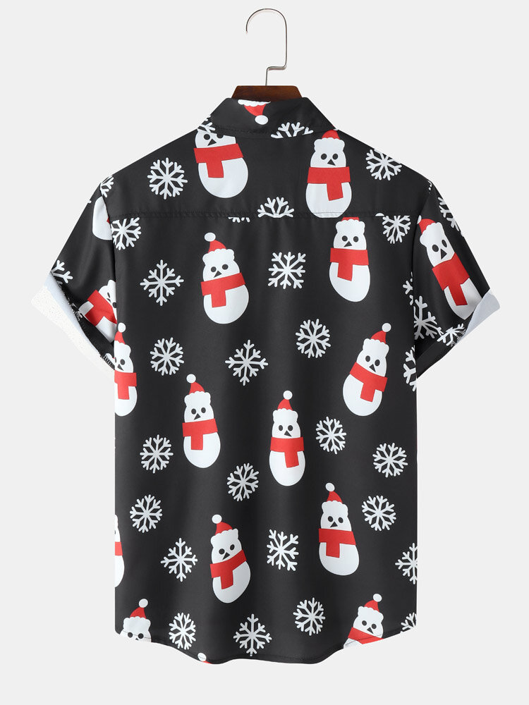 Men Snow Man Snow Digital Printed Casual Short Shirts – Black M