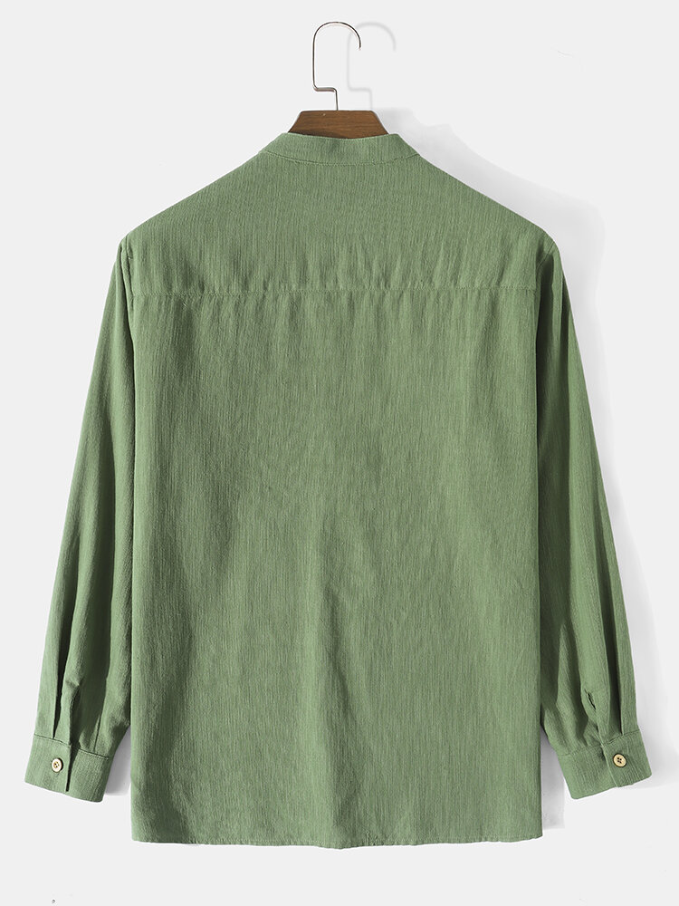 Men Solid Basic Henley Collar Side Slit Long Sleeve Casual Shirts – Green S