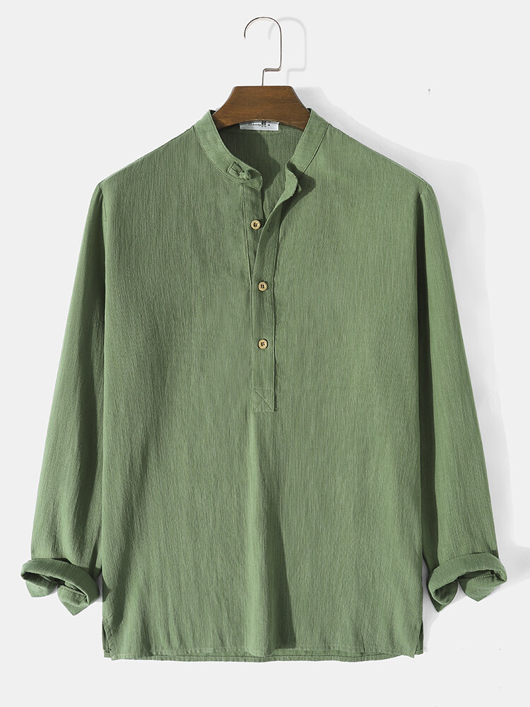 Brand:ChArmkpRDecoration:ButtonFit Type:Loose FitMaterial:Cotton,OtherNeckline:Henley CollarPattern Type:SolidScene:Leisure,Outdoor,Wedding,Home,CasualSeason:Spring,AutumnSize:2XL,L,S,XL,MSleeve:Long SleeveStyle:CasualThickness:Regular