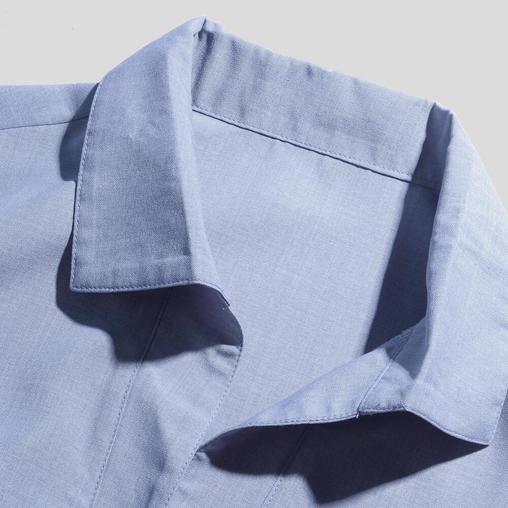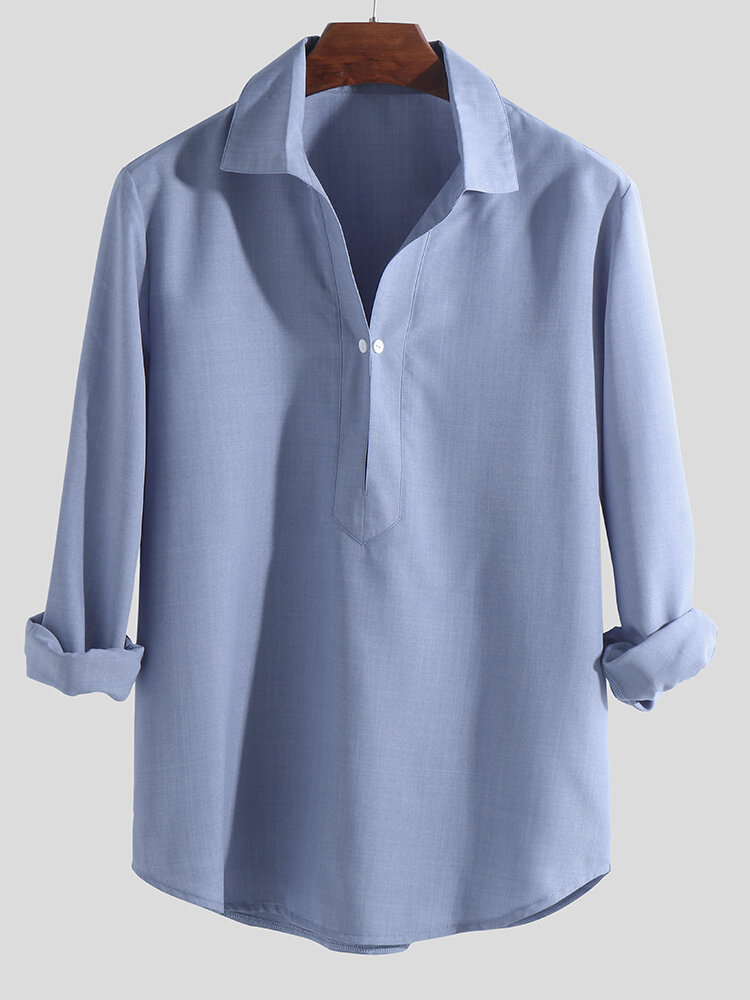 Men Solid Color Turn Down Collar Half Open Shirts – M Dark Blue