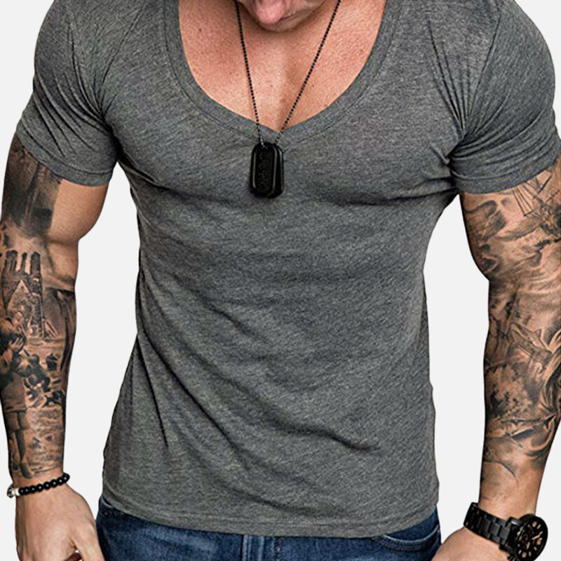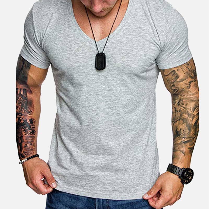 Item Type: T-shirtsPattern Type: Solid ColorGender: MenFit Type: SlimStyle: Casual, LeisureThickness: ThinCollar: V-neckSeason: Spring, SummerMaterial: 50% CottonOccasion: Leisure, SportSleeve Length: Short Sleeve