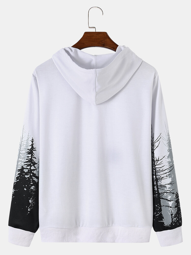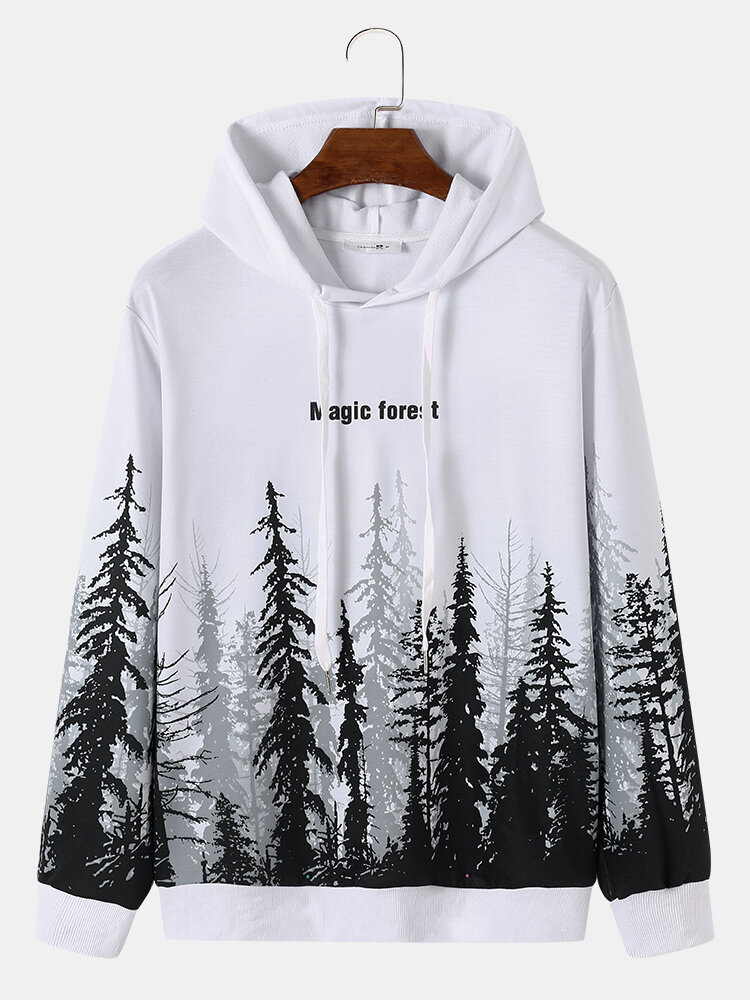 Men Street Landscape Trees Letter Character Pullover Hooded Sweatshirt – White S
