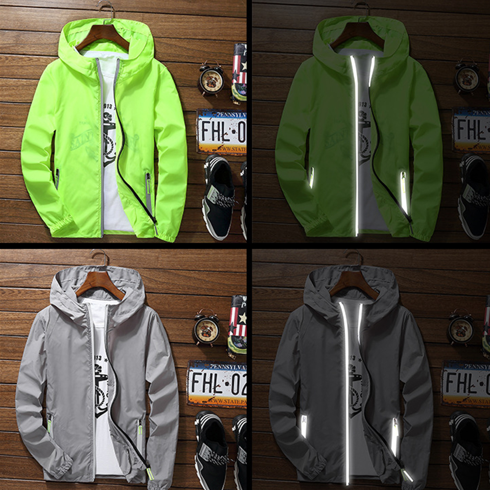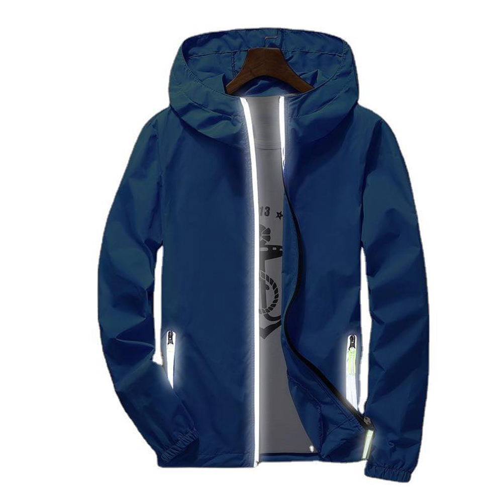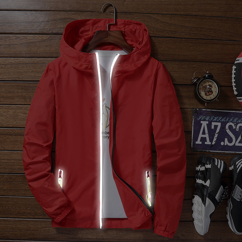Men Sun Protection Coat Solid Color Quick-drying Hooded Sunscreen Shirt With Reflective Strip 615 red XL