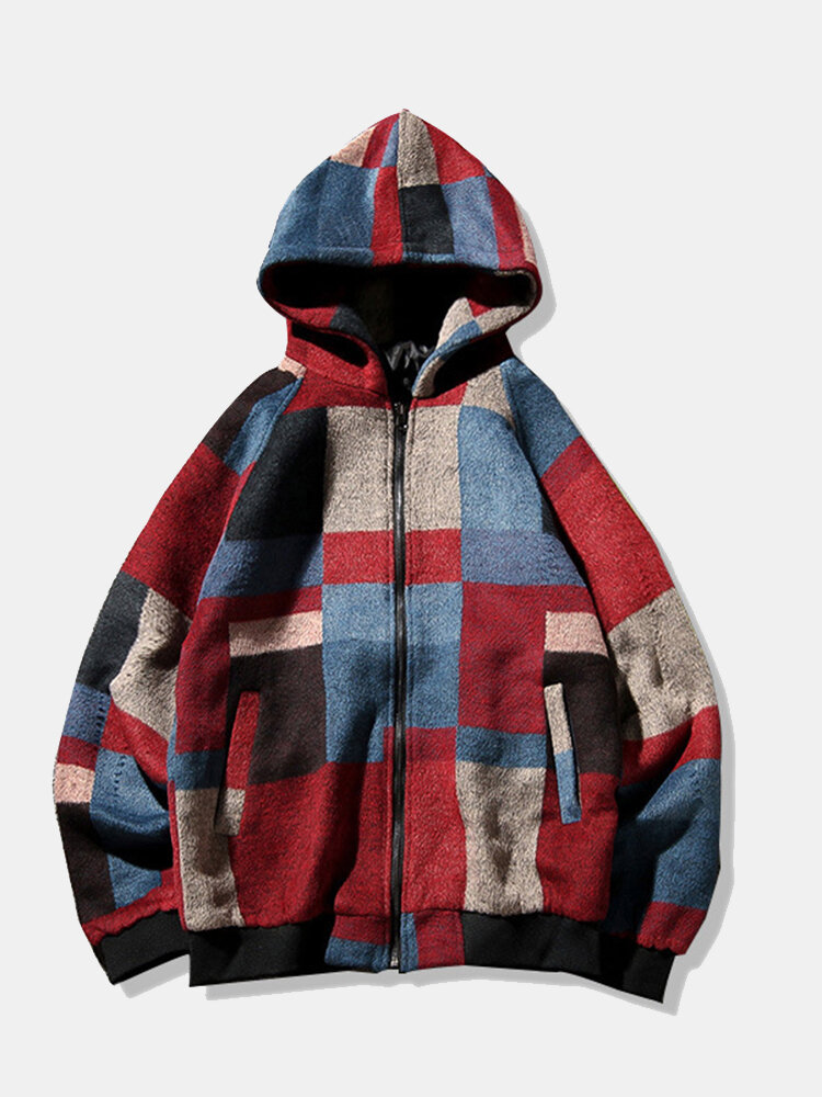Men Tartan Literary Cardigan Zipper Hooded Sweatshirt – 4XL Black