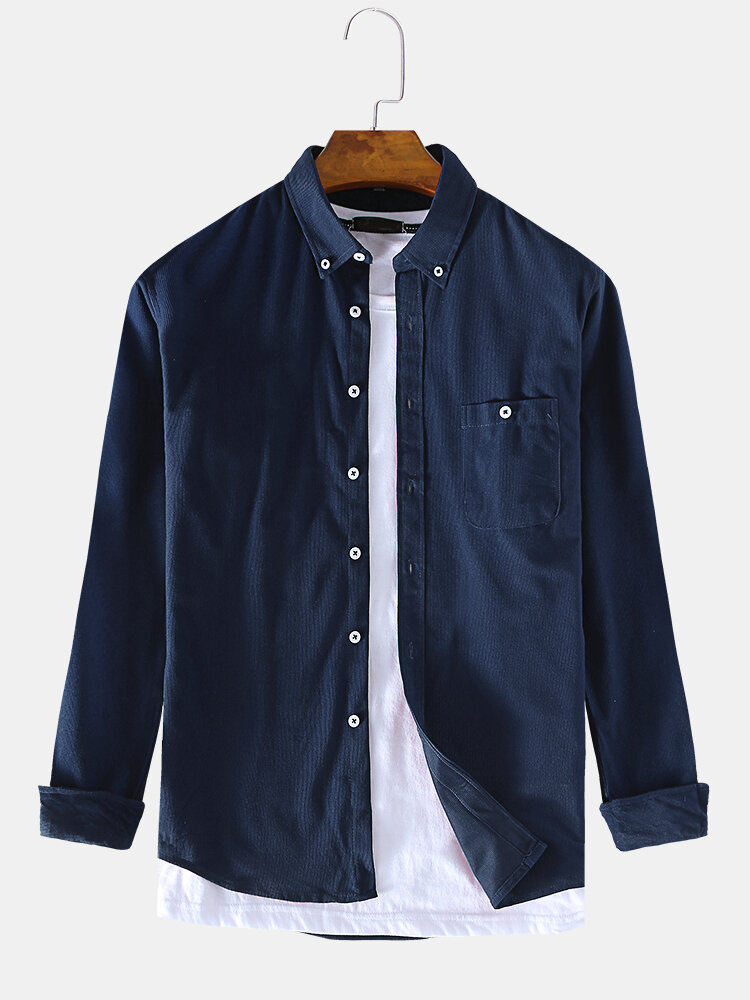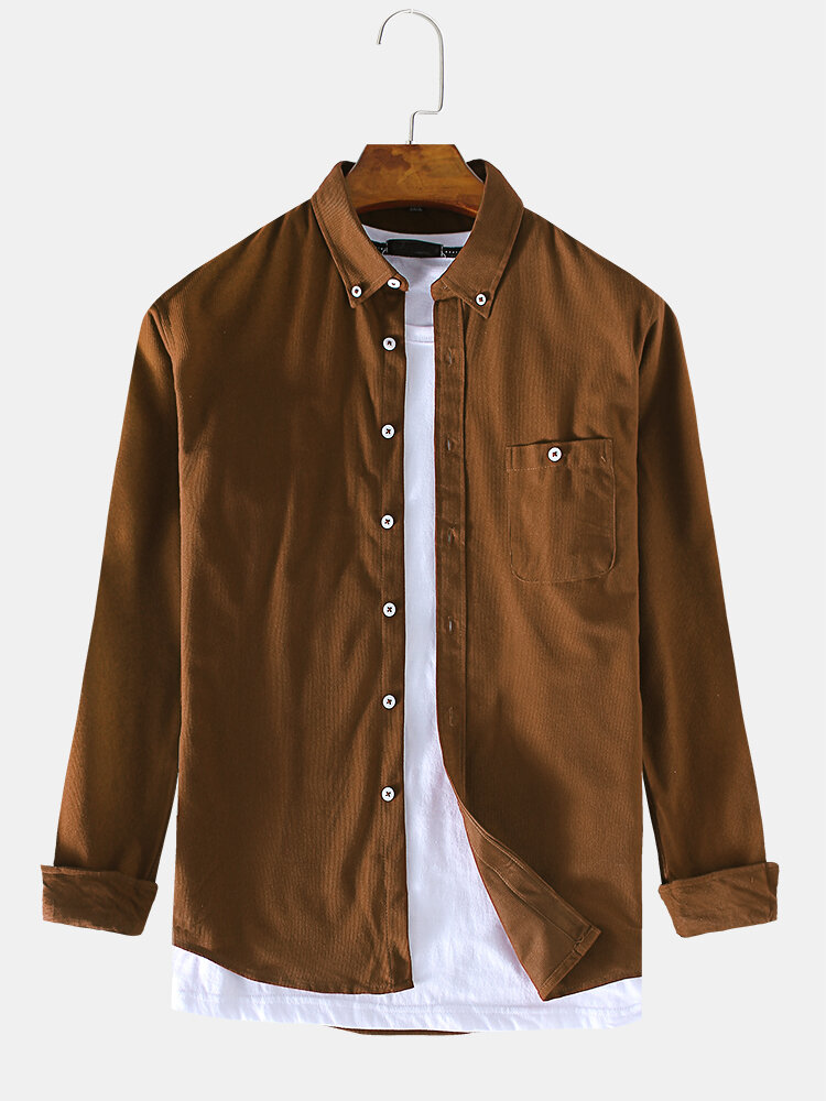 Item Type: ShirtsPattern Type: Solid ColorGender: MenFit Type: LooseStyle: Casual, Classic, Home, WorkThickness: RegularCollar: Turn-down CollarSeason: Spring, Autumn, WinterMaterial: CorduroyColor: Black, Coffee, Khaki, Navy, Red, White, Orange, PurpleCuff Type: Shirt SleevesOccasion: Leisure, Work, HomedressSleeve Length: Long Sleeve