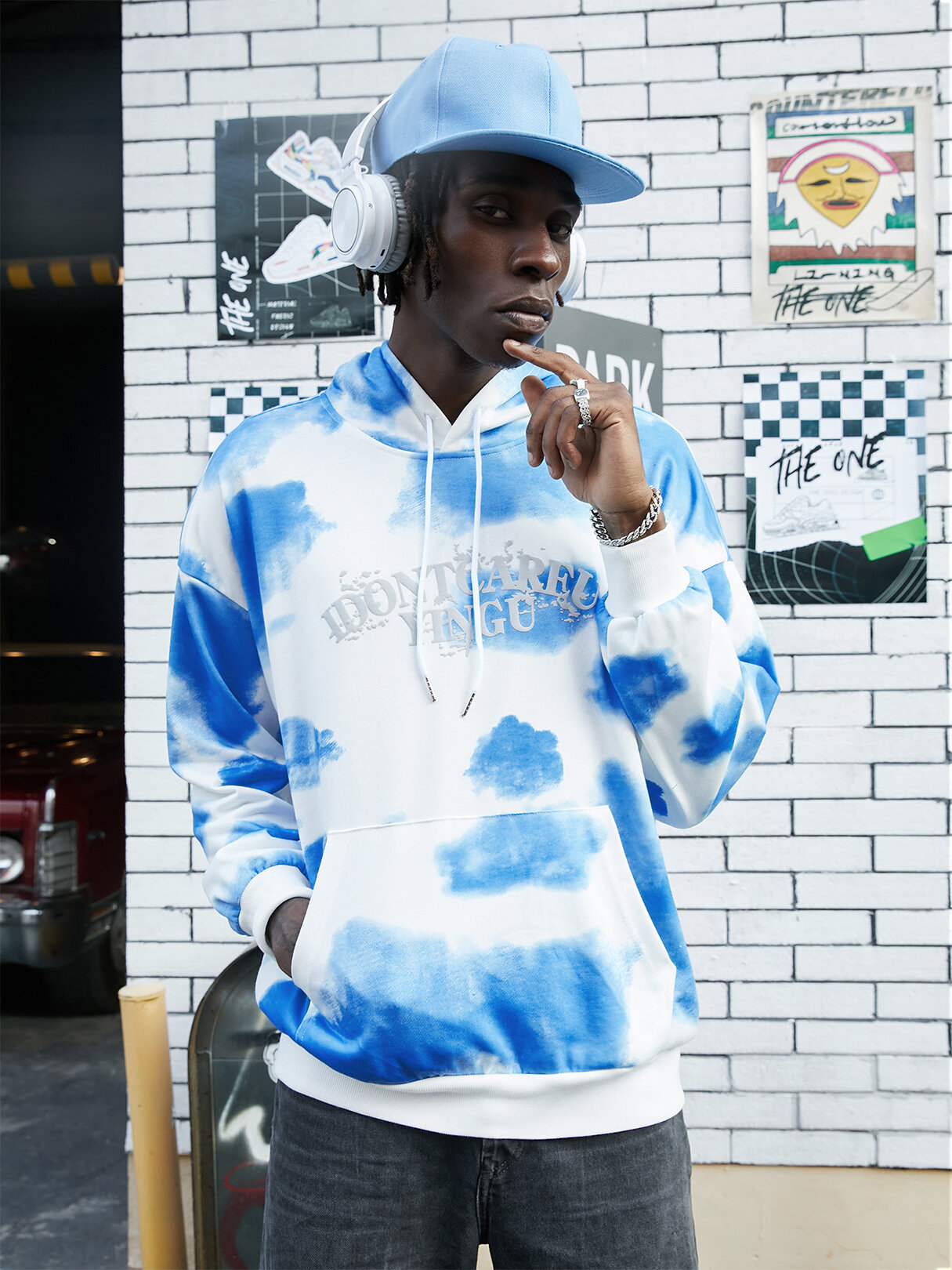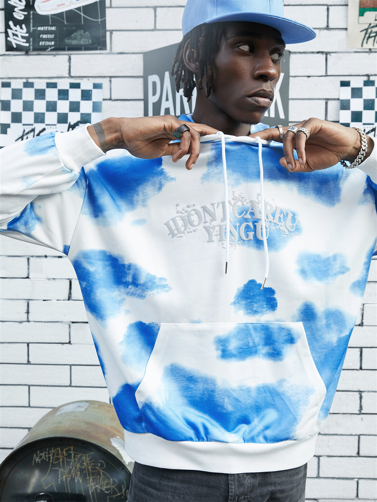 Men Tie Dye Letter Print Pocket Hoodie – Blue S