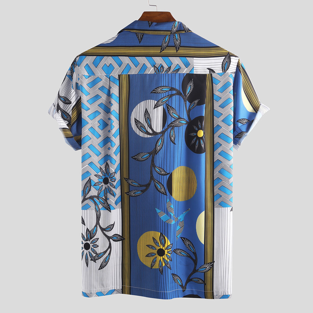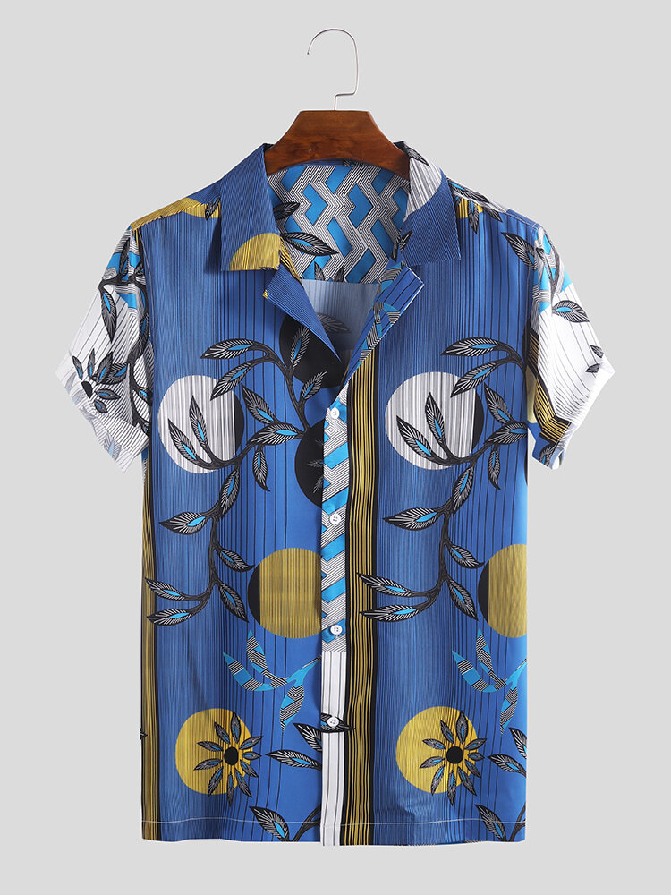 Men Tile Print Short Sleeve Revere Shirts – XL Blue