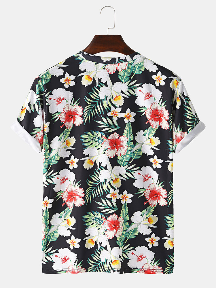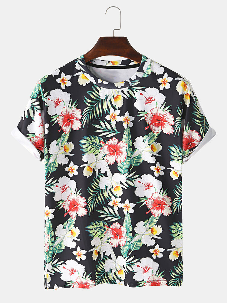 Description:Fit Type:Loose FitMaterial:PolyesterNeckline:Round NeckPattern Type:Ditsy Floral,TropicalScene:Leisure,Home,Beach,CasualSeason:SummerSize:M,L,SSleeve:Short SleeveStyle:Casual,Hawaii Style