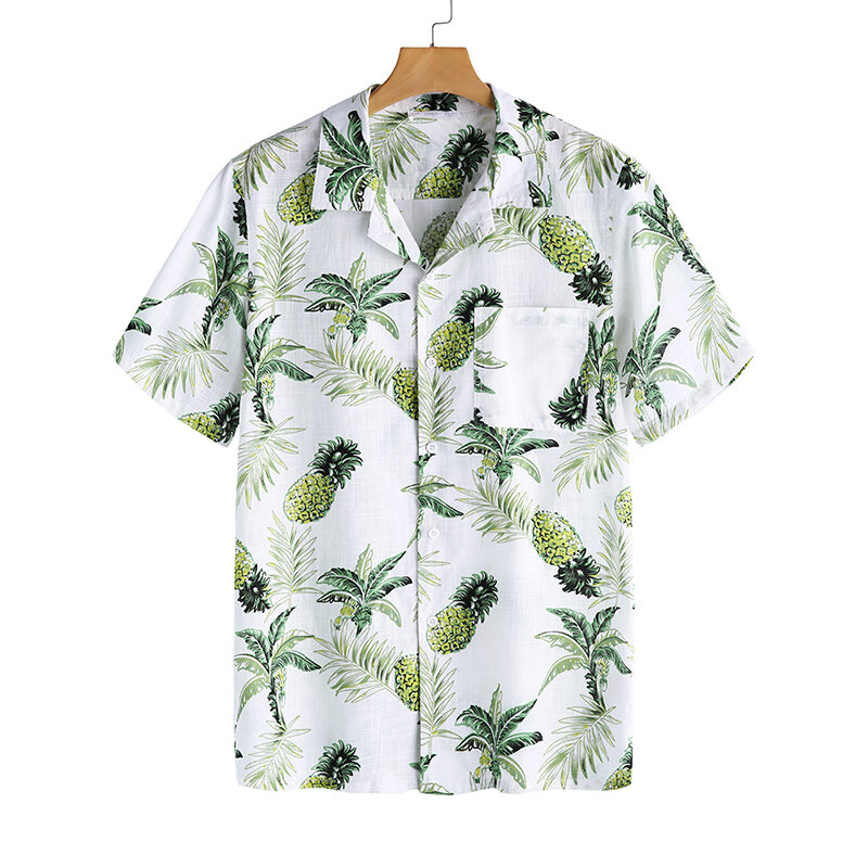Men Tropical Plants Printed Short Sleeve Hawaiian Shirts – 2XL White