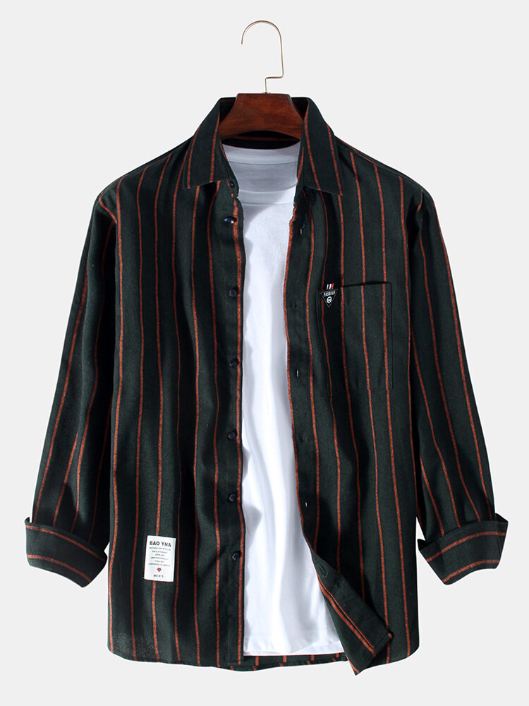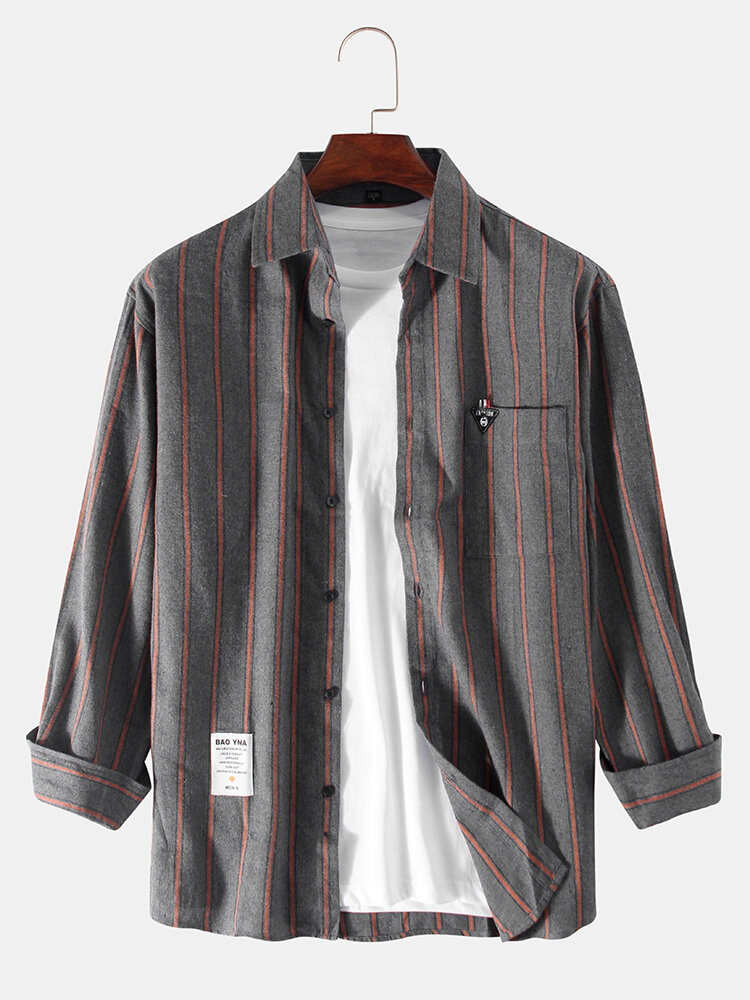 Decoration:Pocket,ButtonElasticity:Slight ElasticFit Type:Regular FitMaterial:PolyesterNeckline:LapelPattern Type:StripedScene:Leisure,CasualSeason:Spring,Autumn,WinterSleeve:Long SleeveStyle:Vintage,CasualThickness:Regular