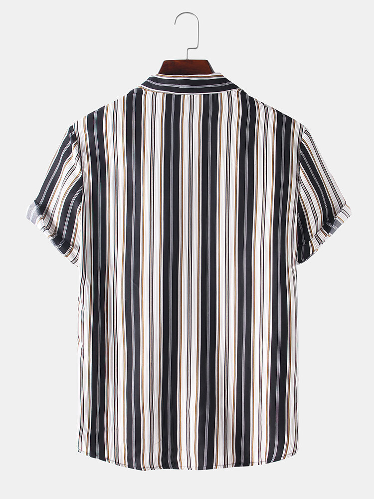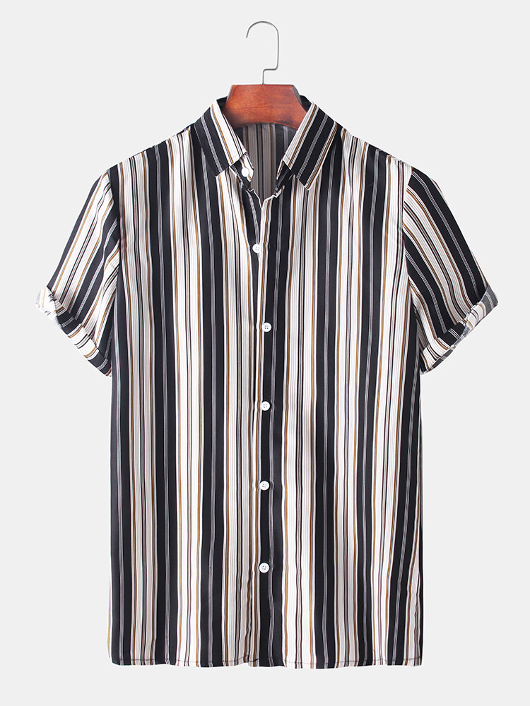 Description:Fit Type:Regular FitMaterial:OtherNeckline:LapelPattern Type:StripedScene:Leisure,Home,Beach,CasualSeason:SummerSize:L,S,XL,MSleeve:Short SleeveStyle:Casual,Hawaii Style