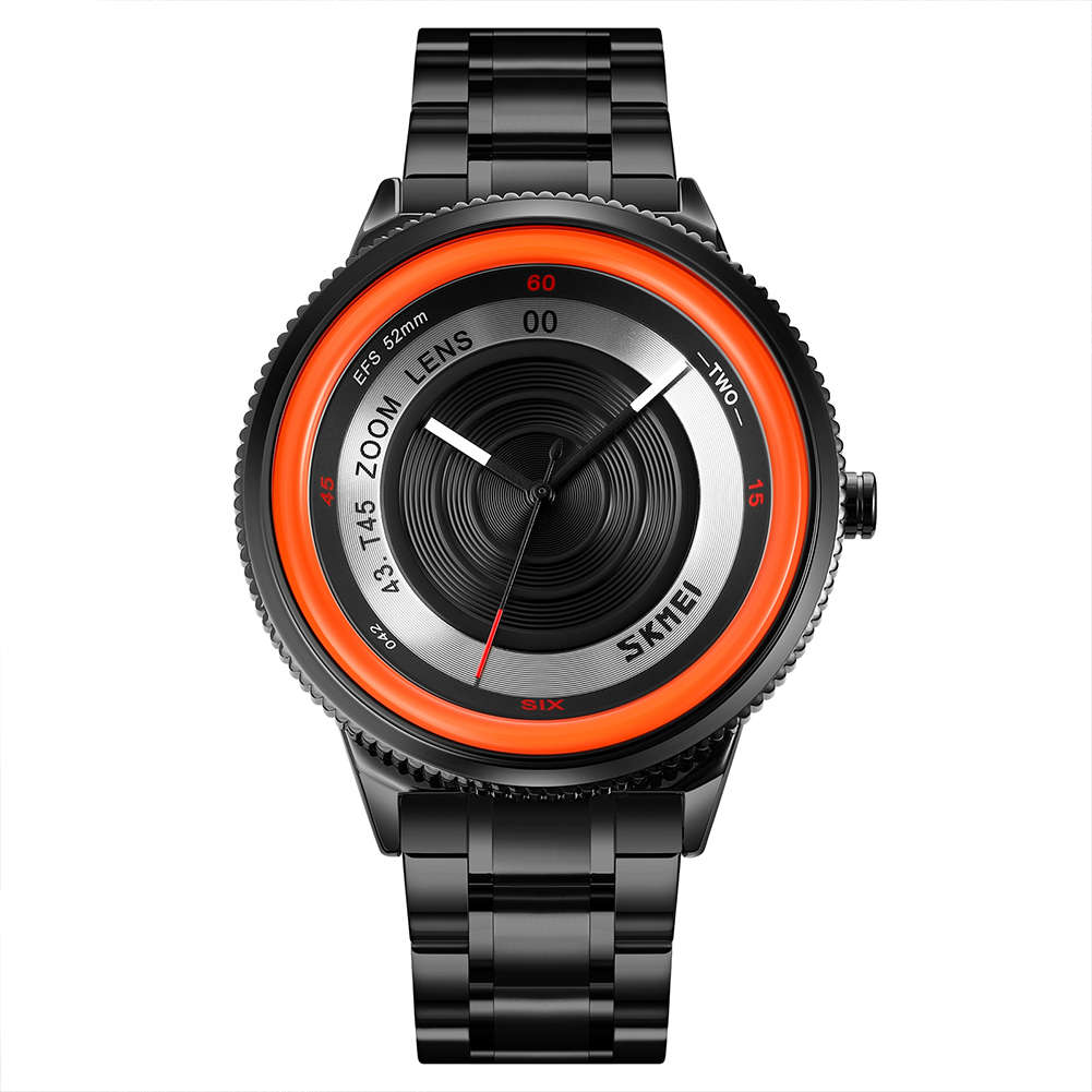 Men Watch Zinc Alloy + Stainless Steel Skmei Fashion Style Quartz Movement Waterproof Band orange