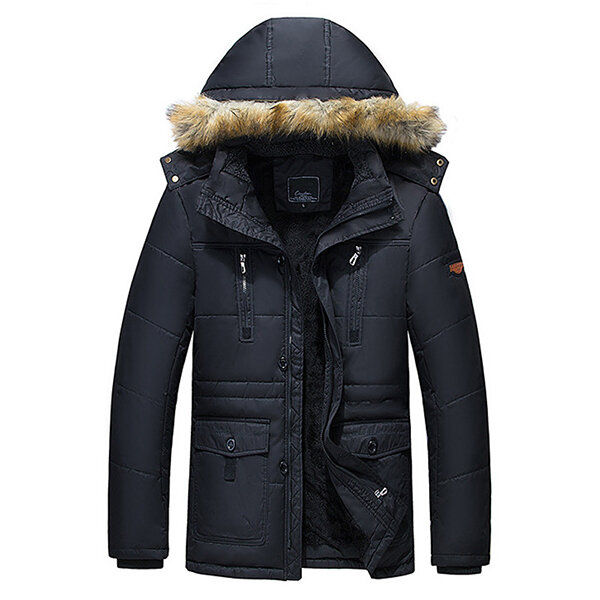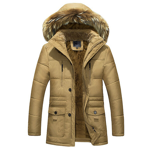 Men Winter Wark Thick Fleece Warm Furry Hooded Outdoor Jacket Parkas – S Khaki