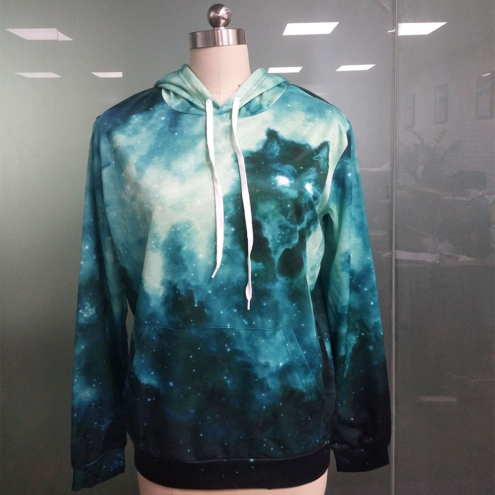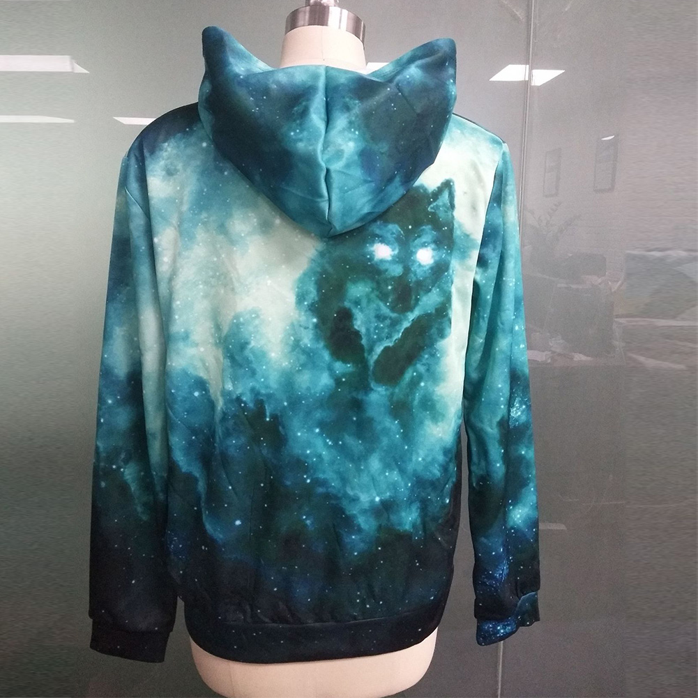 Men Women 3D Starry Green Wolf Printing Baseball Uniform Hooded Sweatshirts for Lovers Couples green_4XL
