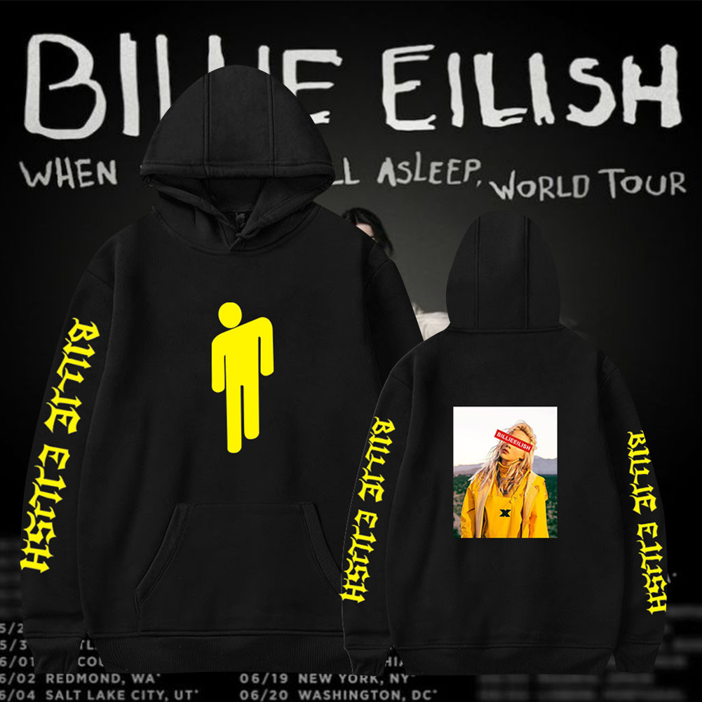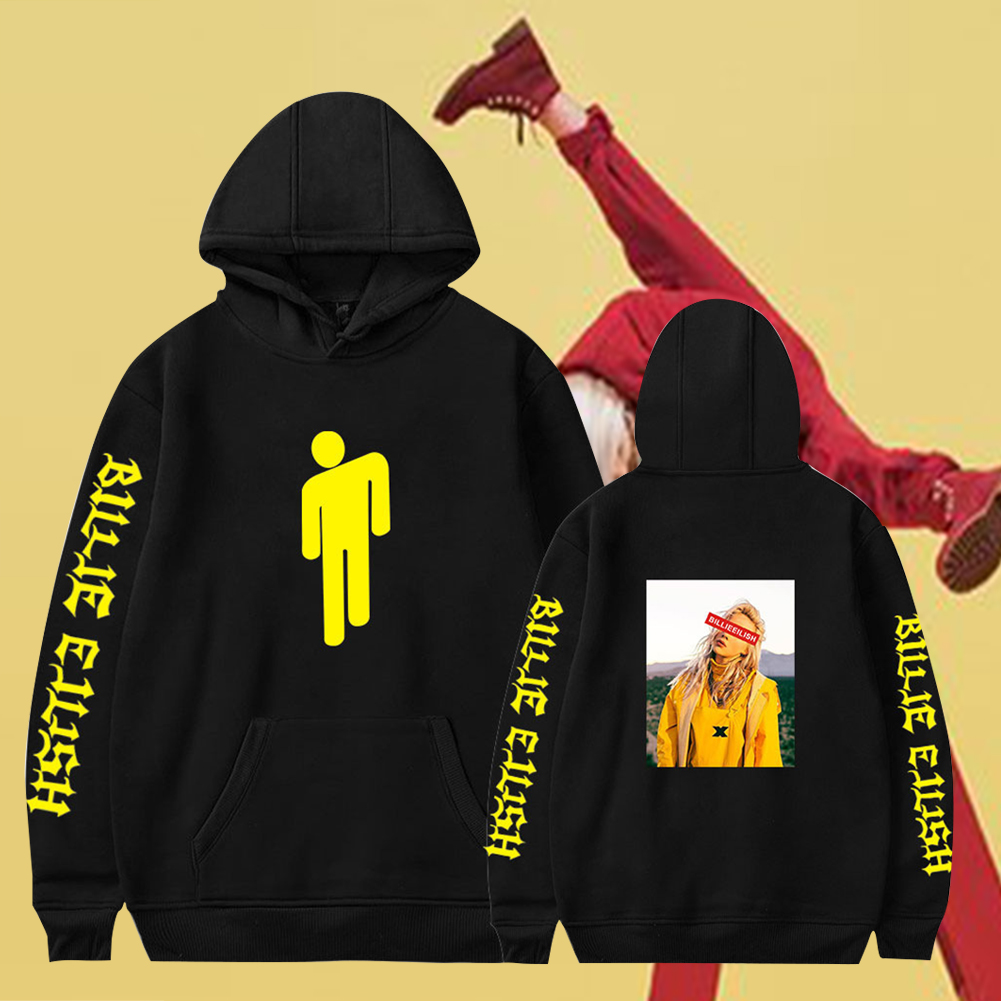 Men Women American Singer Billie Eilish Cartoon Pattern Casual Pullover Hoodie Sweatshirt B black_L
