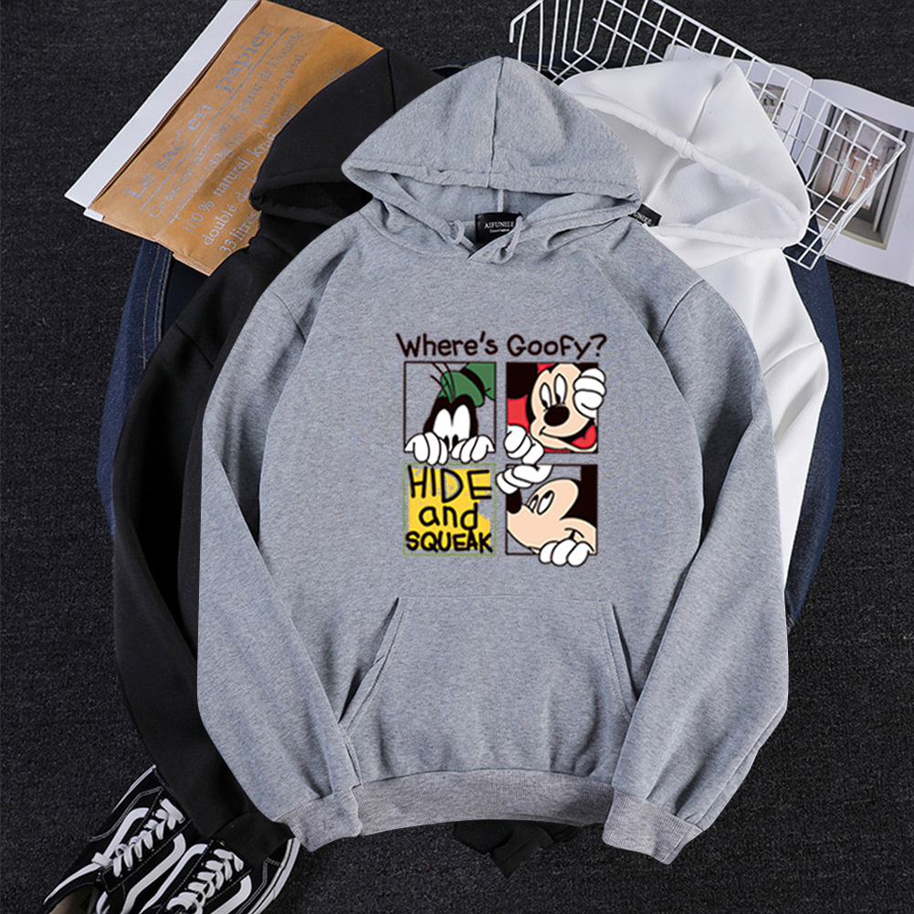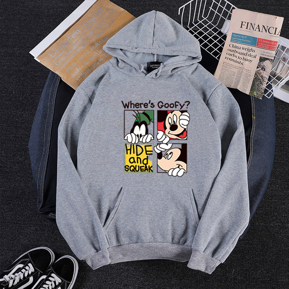 Men Women Cartoon Hoodie Sweatshirt Micky Mouse Thicken Autumn Winter Loose Pullover Gray_XL