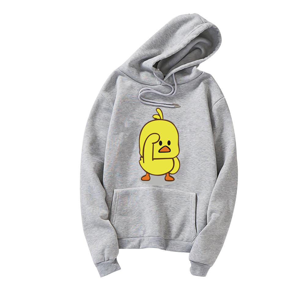 Men Women Cartoon Yellow Duck Pattern Fleece Hooded Sweatshirt yellow_XL