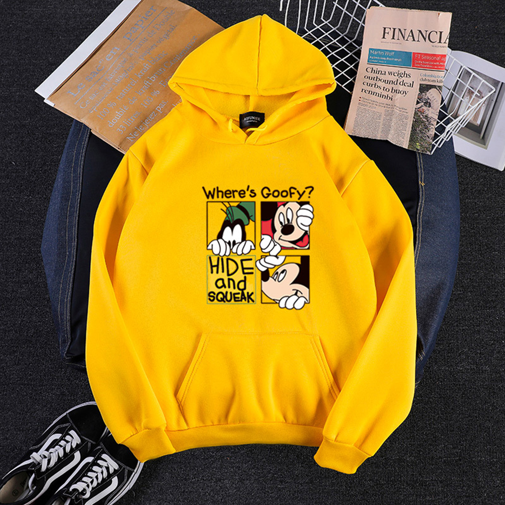 Men Women Hoodie Sweatshirt Cartoon Micky Mouse Thicken Autumn Winter Loose Pullover Yellow_S