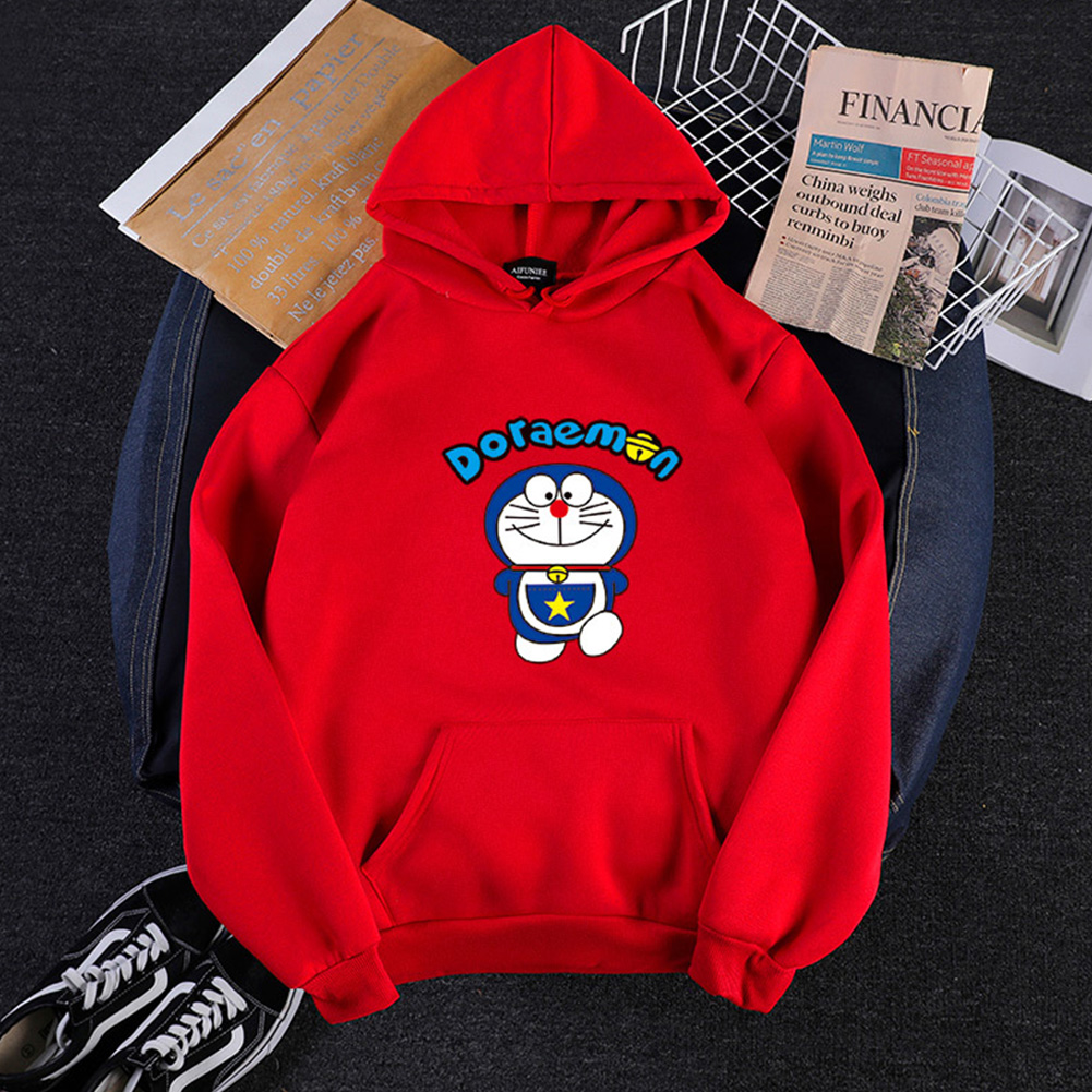 Unisex thicken hoodie sweatshirt, unique and fashion. Cartoon Doraemon pattern with big kangaroo pocket to the front. Long sleeves with ribbed cuffs and hem. Soft and breathable material, comfortable to wear. Loose type, fit for most of us.