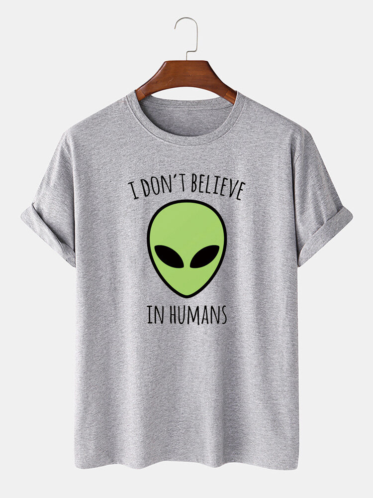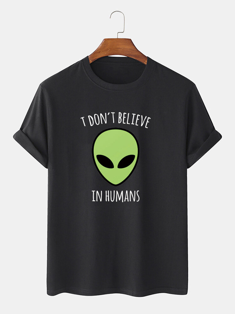 Mens 100% Cotton Alien Print Crew Neck Short Sleeve T-Shirts – Black M