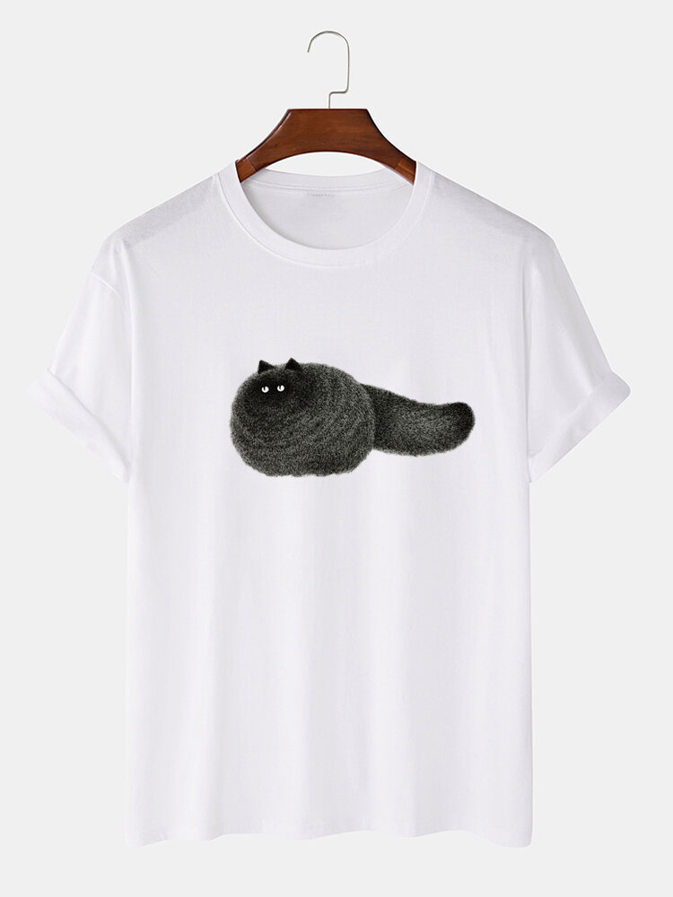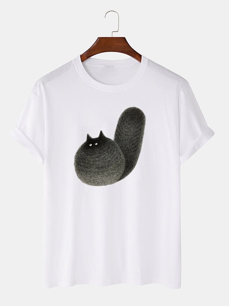 Mens 100% Cotton Animal Print Crew Neck Short Sleeve T-Shirts – White L