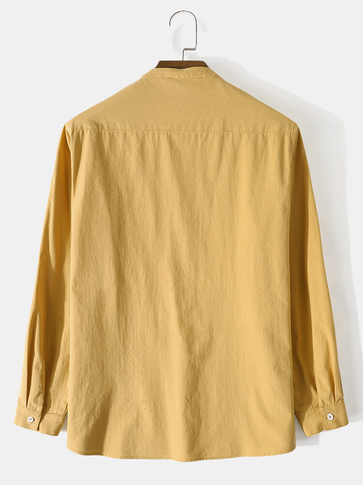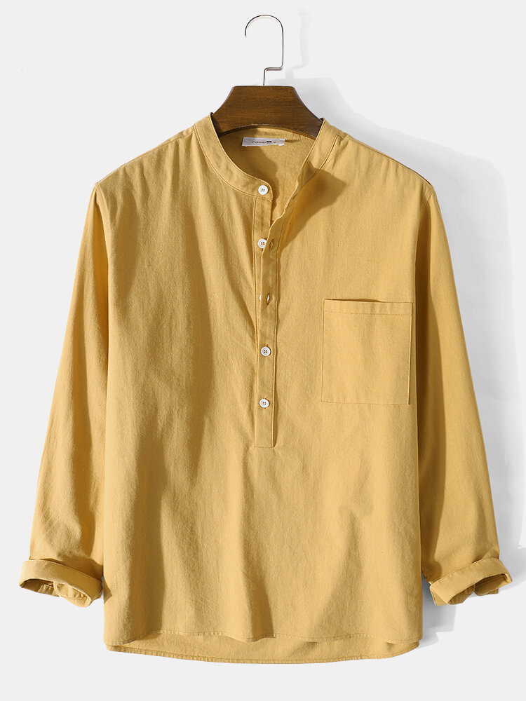 Brand:ChArmkpRDecoration:Pocket,ButtonFit Type:Regular FitMaterial:CottonNeckline:Henley CollarPattern Type:SolidScene:Leisure,CasualSeason:Spring,AutumnSize:XXL,L,XL,S,MSleeve:Long SleeveStyle:CasualThickness:Regular