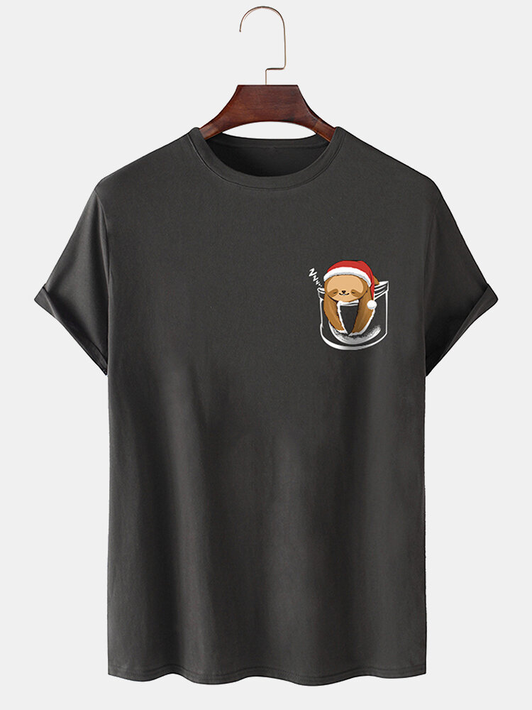 Mens 100% Cotton Bear O-Neck Solid Color Thin T-Shirt – Black S