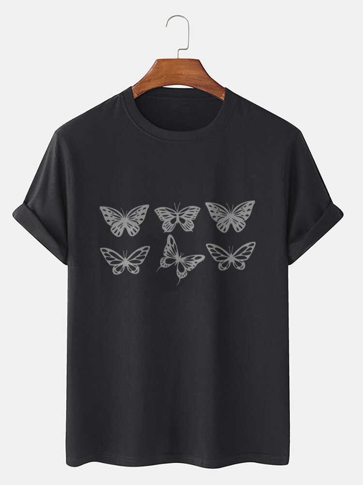 Mens 100% Cotton Butterfly Graphics Crew Neck Short Sleeve T-Shirts – Black XL