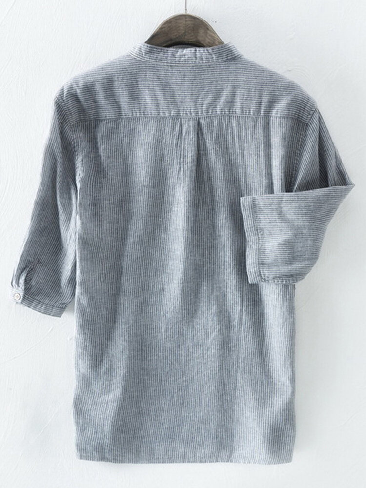 Mens 100% Cotton Button Striped Half Sleeve Breathable Casual Henley Shirts – Khaki XL