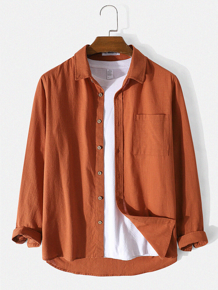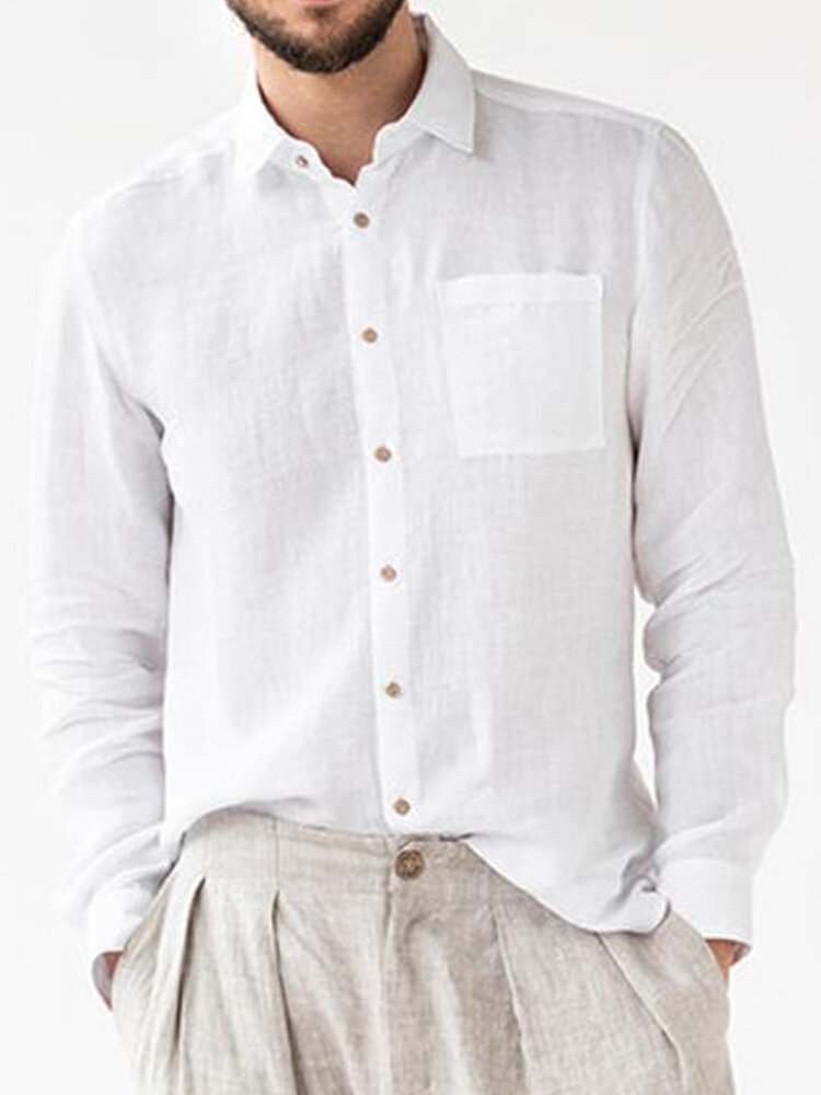 Brand:ChArmkpRDecoration:PocketFit Type:Regular FitMaterial:CottonNeckline:LapelPattern Type:SolidScene:Leisure,Home,Beach,Business,CasualSeason:Spring,AutumnSize:XXL,L,S,XL,MSleeve:Long SleeveStyle:CasualThickness:Regular