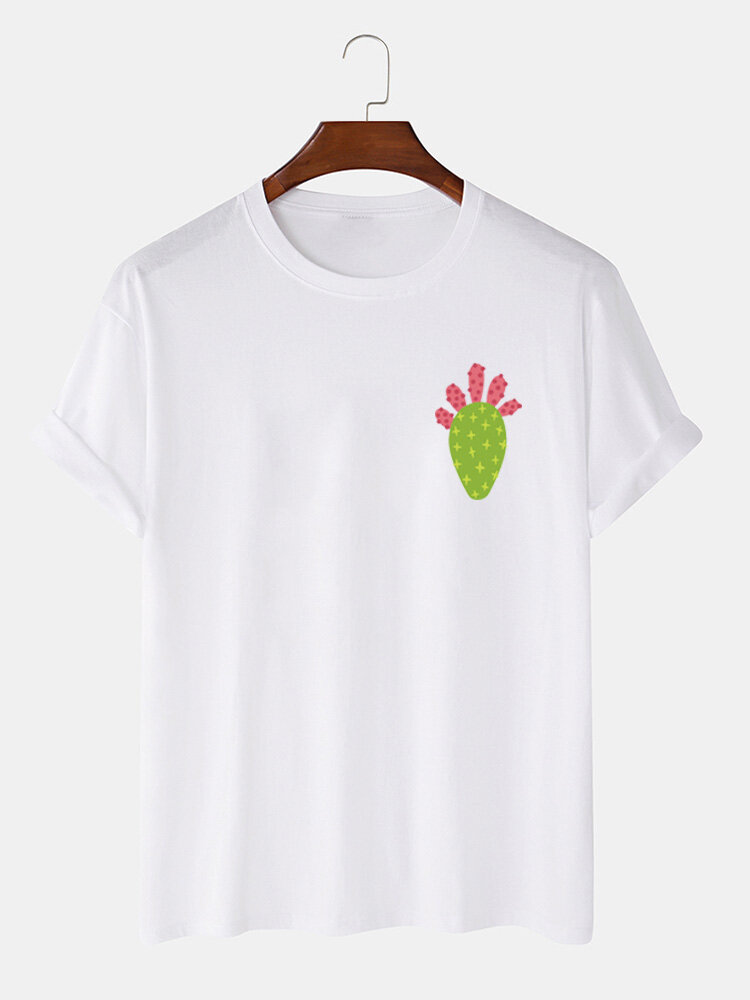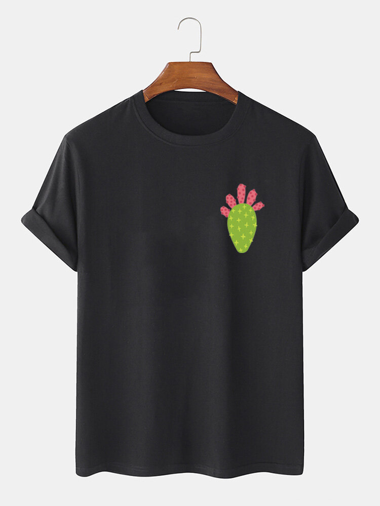 Mens 100% Cotton Cactus Printed Round Neck Casual Short Sleeve T-Shirts – Grey S