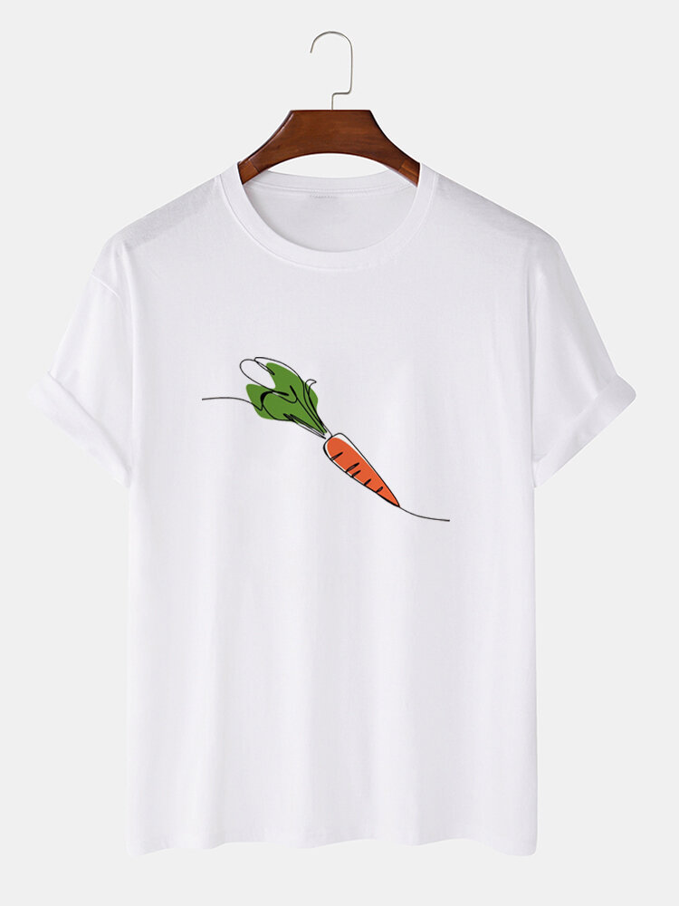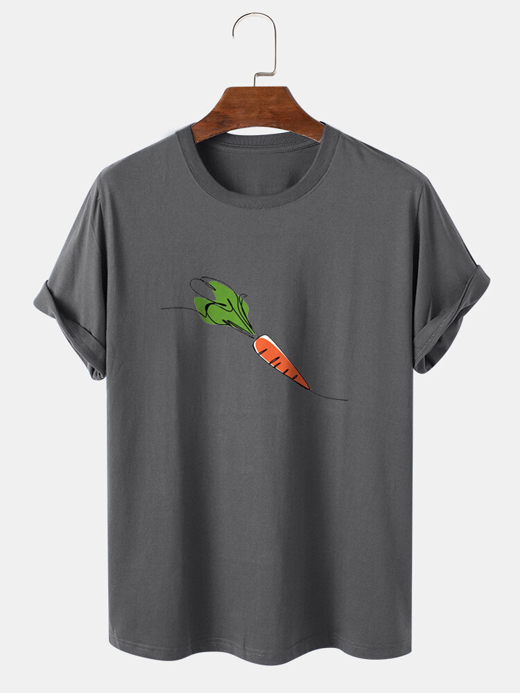 Mens 100% Cotton Cartoon Carrot Print Short Sleeve T-Shirt – Grey M